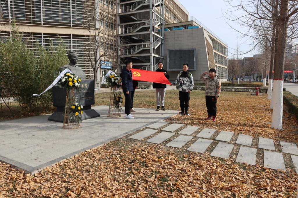 料峭寒风中,英雄雕像傲然独立。20余名师生党员面向吴运铎雕像前肃立致敬。党员们缓步走向吴运铎雕像,代表公司师生敬献花篮,并整理花篮缎带, 向英雄深情鞠躬,垂首默哀。员工党员董嘉宏诵读《把一切献给党》中的“入党”章节,通过重温经典形式深入学习兵工英雄吴运铎同志迎难而上、在党和人民需要的时候挺身而出的优良作风。在英雄雕像前,全体师生党员面对鲜红的党旗,高举右拳重温入党誓词,表达出坚定不移永跟党走的决心,彰显了不惧风雨、勇挑重担,为祖国发展和民族复兴贡献青春蓬勃力量的信念。“作为一名西工学子,能够在兵工英雄诞辰这个特殊的日子里阅读分享红色经典,深入了解吴运铎同志坚守初心、对党和人民极度忠诚的感人故事,极大地激发了我们青年一代坚定理想信念、争做新时代的奋进者、开拓者、奉献者的使命感与责任感。”员工党员贺毓激动地说。支部书记何鹏程表示,青年党员要学习弘扬吴运铎同志始终对党、对祖国、对人民绝对无限忠诚的精神品质,练就过硬本领,进一步传承发扬西工精神,勇担时代使命,将小我融入大我、以青春奉献祖国。