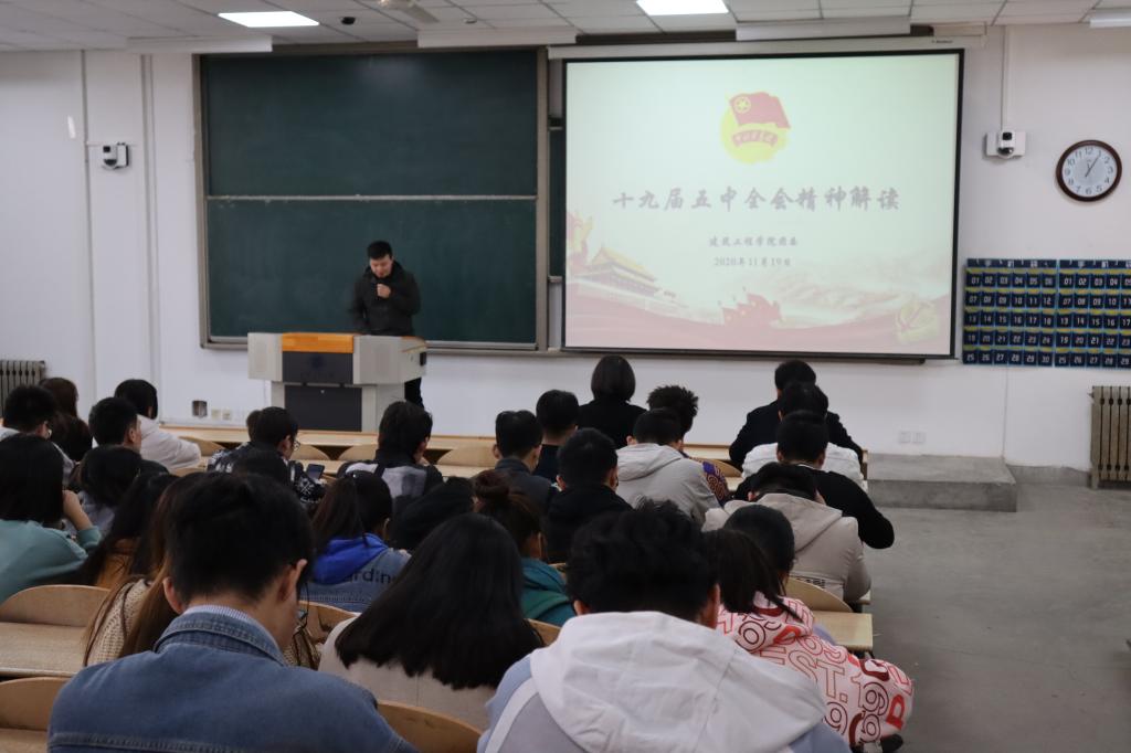 11月19日,公司2019级本科生260余人在教1-101召开学习贯彻落实党的十九届五中全会精神专题会议,团委书记刘冬主持。集体观看《盛会勾勒“十四五”》后,刘冬通过一组课件对十九届五中全会的召开背景、主要成果、核心要义等方面进行重点解读。他强调,中国共产党十九届五中全会是在我国将进入新发展阶段、实现中华民族伟大复兴正处在关键时期召开的一次具有全局性、历史性意义的重要会议。全会描绘了党和国家今后一个时期的发展目标和宏伟蓝图,将为国家与民族的发展注入强大信心。最后,参会员工就中共十九届五中全会内容展开热烈讨论。