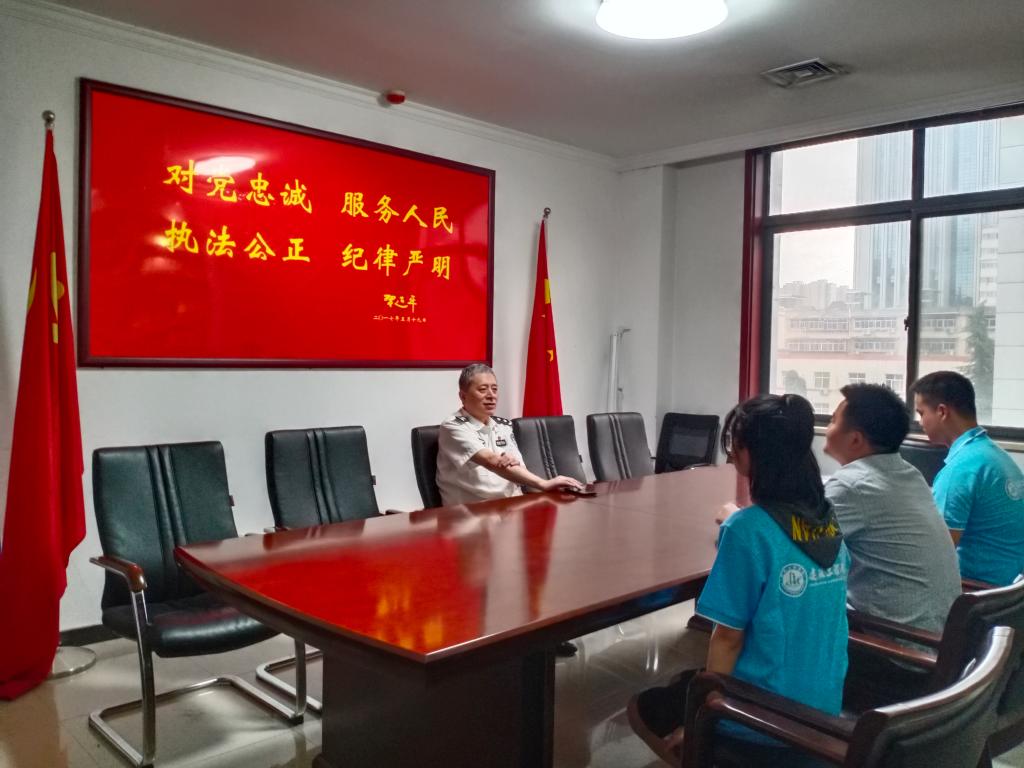 之后,实践队员与陕西省禁毒办常务副主任、公安厅副厅级侦查员、禁毒总队总队长孙晓刚进行座谈交流。孙警官向实践队介绍了近年来市面主要流通毒品的类型,并讲解了陕西省的禁毒工作情况。目前的禁毒工作主要是通过预防降增量,通过戒毒减存量,并且加大打击力度,让毒贩毒品无处藏身。实践队员向孙警官咨询如何更好地防毒和开展毒品宣传教育,他对同学们的问题一一做了回应。他结合自身的工作经历,语重心长地对大家说:“在防毒方面,要提高识别毒品的能力,注意树立正确的三观,远离复杂场所,果断拒绝毒品;在毒品宣传教育方面,注重结合自身专业,开展特色宣传活动,要有足够的耐心,脚踏实地,多向身边亲朋好友长期宣传。”座谈结束后,孙警官与实践队合影留念,希望实践队员长期投身禁毒宣传教育,不断扩大宣传领域与效果,逐步提升广大群众对毒品的防范能力,进一步增强全民防毒、拒毒意识。