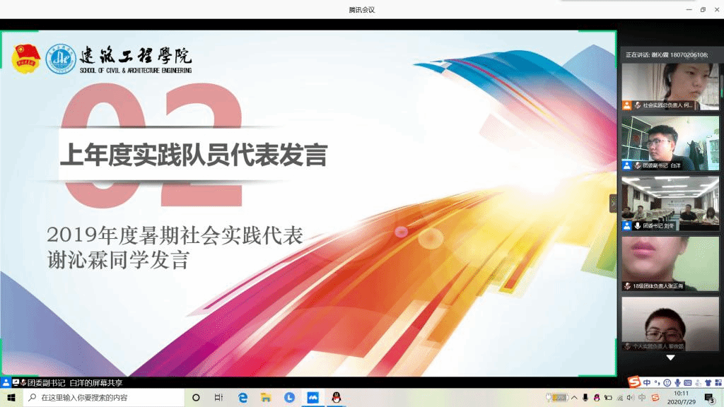 会议伊始,团委副书记白洋介绍社会实践筹备情况情况,依次介绍各实践队的指导老师及实践主题,讲解了社会实践的形式和要求。随后,由2019年度暑期社会实践优秀团队代表谢沁霖同学发言,分享上一年度实践经验,提出实践要符合实际,分工合理,材料完整的建议,强调新闻稿和照片是重中之重。在听取了经验后,由2020年度社会实践代表张玉梅同学发言,她表示本次实践活动是一次提升自己、拉近师生关系、回报社会的机会。之后,实践团队指导老师代表安春雨发言,从方法、效果及精神等方面对本次实践活动进行全方位指导,提醒员工要在实践中不忘使命,关注时事热点,与社会紧密联系,同时突出特色内容,使实践活动有特色、有创新,将实地调研与服务社会相结合,积极宣传调研思想,扩大活动影响力。而后,党委副书记翟超首先对公司往年实践取得的成就给予高度赞扬,强调本次实践要以安全为首要重点,在深入基层中厚植家国情怀,在社会实践中练就过硬本领,坚定“四个自信”,弘扬奉献精神,把自己的理想抱负与国家的前途命运联系起来,在安全前提下充分展示TapTap的风采,在此次实践中为决胜全面建成小康社会、决战脱贫攻坚贡献建工青年智慧和力量,并对公司宣传部门表示要做好宣传工作,为实践队保驾护航。