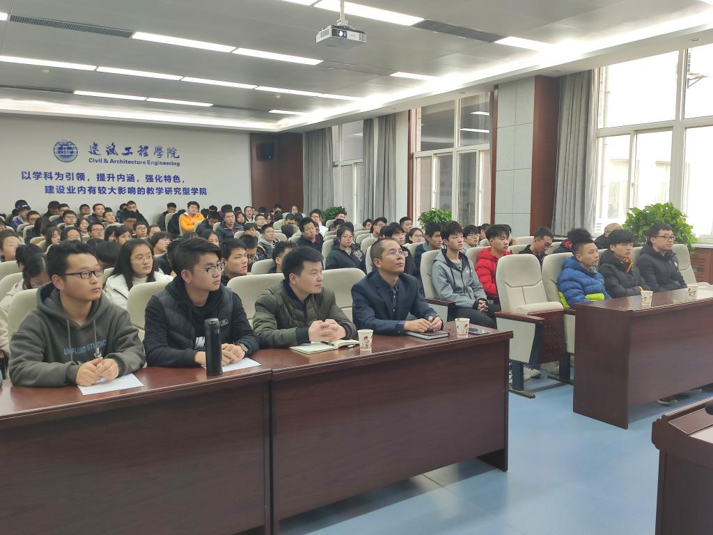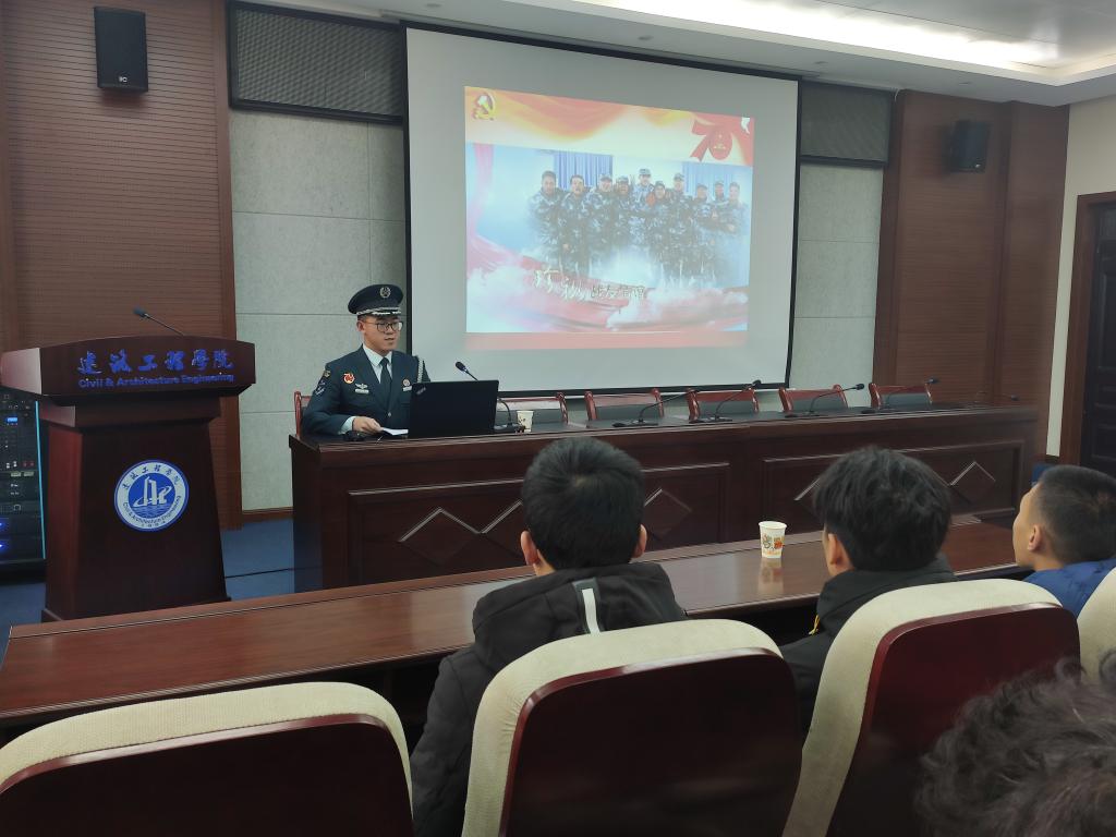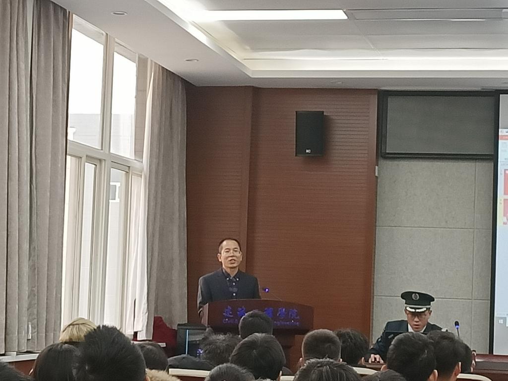 贾皓结合自己的从军经历,分享了军人生涯及“阅兵经历”对于自己整个人生的特殊意义,他表示参军实现了自己从小的军人梦,而正是源于“担当强国重任,争做有为青年”的坚定理想信念,其经过层层选拔、严格训练,从400人中脱颖而出,进入352人方队,成为国庆70周年阅兵文职人员方队成员。随后,他分享了自己阅兵训练期间的苦与乐,强调“细节决定成败”,128个正步背后是无数个烈日炎炎下的军姿、正步训练,30秒不眨眼、踢腿高度30cm、步幅间距75cm……正是对于动作细节的追求,才有了整齐划一、协调一致的阅兵现场,向全世界展现中国气质。之后,贾皓通过图片讲述了190余天的艰苦训练,每天长达10余小时训练,流血流汗、手上磨出老茧、皮鞋磨破两双……此外,在训练中,还得时刻经受随时被淘汰的心理考验。正是由于心中一直秉承着“坚持就是胜利”的信念,在地表高温的“烤”验下,完成了极限挑战。最后,他讲道,“磨练训练到最后都是锻炼,难受忍受到最后都是享受”,激励在场的学弟学妹们勇于追梦,以青春之志扬爱国之情,砥砺前行,不负时代。在场观众无不被其深情地讲述所感染,爆发出阵阵热烈掌声。报告会后,在场同学们与员工贾皓进行了问答互动。