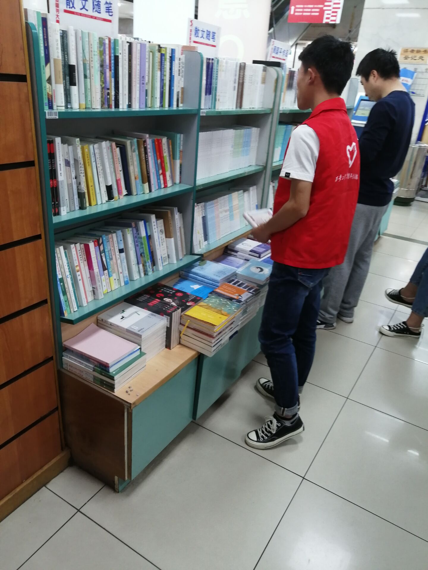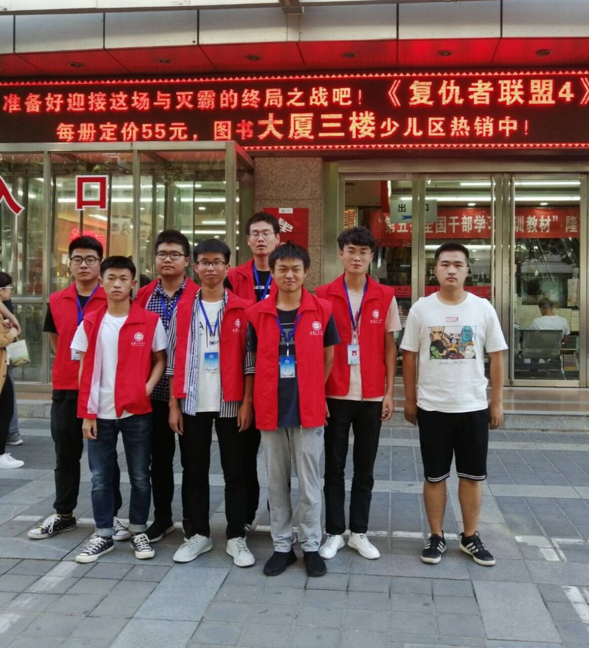 在与负责人短暂的沟通后,带队的队长便分好小组并分配了任务。此次活动,志愿者们主要进行图书整理工作,以及指引读者顺利快捷地找到所需要的书籍,并为读者提供一些力所能及的帮助。当志愿者在志愿服务时遇到不懂的地方,也会积极地去请教工作人员。下午五点半,志愿者们结束了工作,并在图书大厦门口合影。