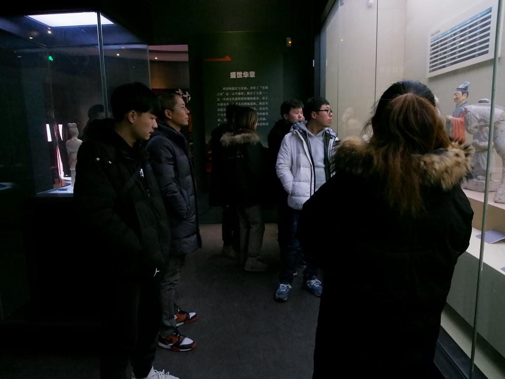 昭陵博物馆位于九嵕山下李勣墓旁,在讲解员的带领下,大家依次参观了昭陵文物精华展、被誉为中国三大碑林之一的昭陵碑林以及昭陵唐墓壁画展。大家叹服于展出的各种文物,更为历代名流撰写的碑文而驻足停留。