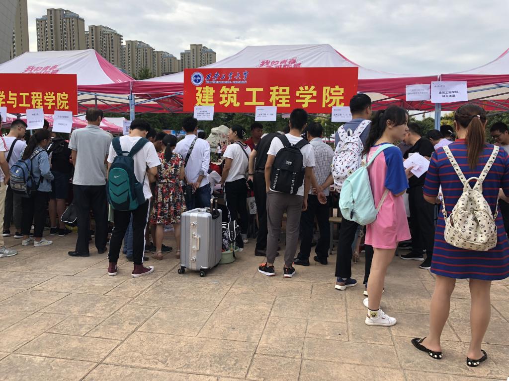2018年9月3日是迎接新同学的第一天,迎新标语振奋人心,迎新工作点人头攒动,爱心服务车队穿梭往来,前来报到的新生络绎不绝,现场有条不紊,一个个忙碌的身影,一张张亲切的笑脸,构成了西工一道道亮丽的风景线。工作人员们仔细审查报道的相关资料并认真登记好相关信息;其他迎新人员负责为初来乍到的新生们分发报到须知、引导路线并介绍公司。公司还特地为新生及家长准备了“与建工公司初见留影”合影墙,受到了新生及家长的欢迎。
