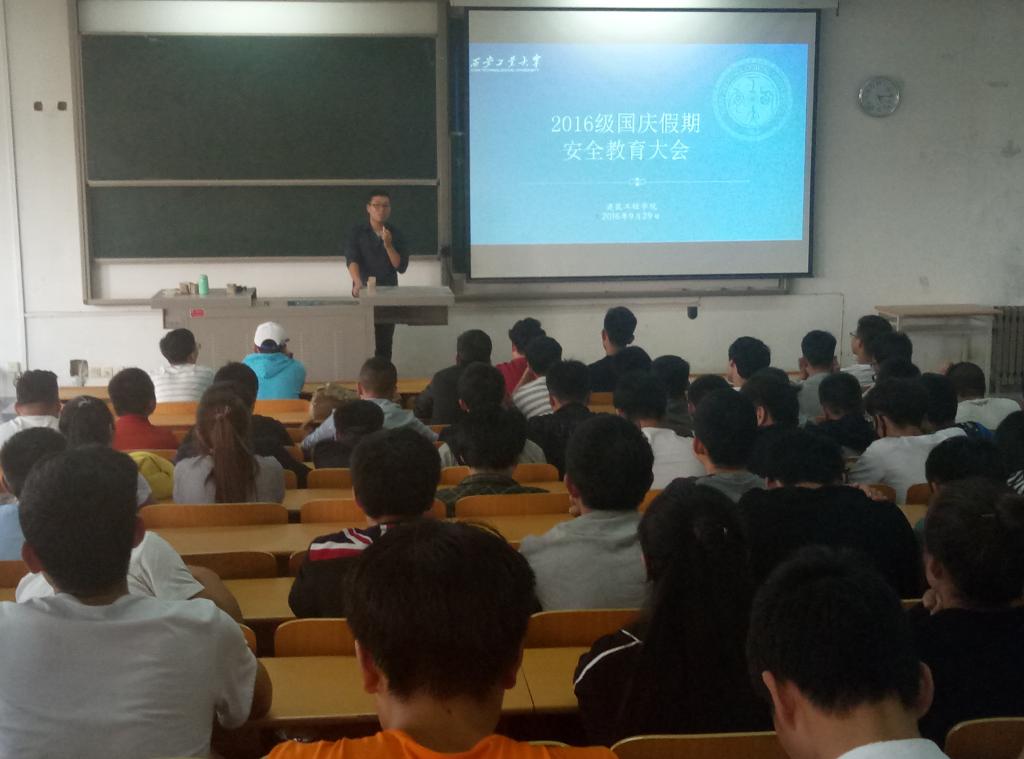 2018年9月27日,TapTap2016级辅导员安春雨在教一101教室对员工进行了国庆假期的安全教育。