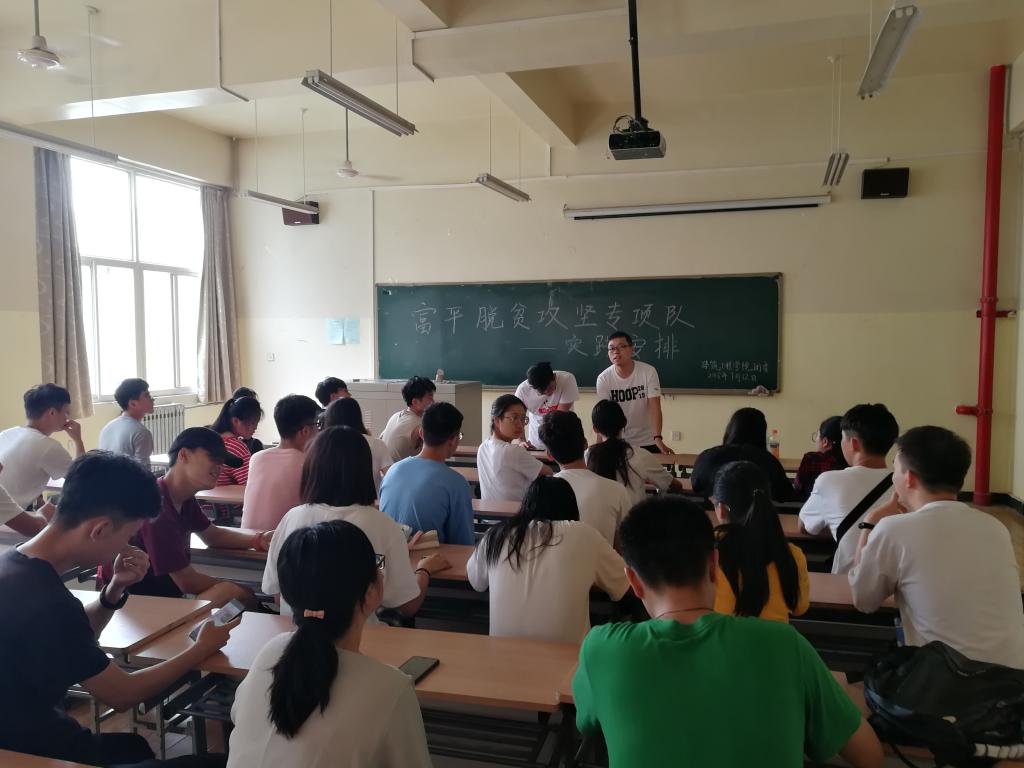 本次会议由富平脱贫攻坚实践队总负责人潘明宇同学主持,他对本次暑期实践提出了一些指导和要求,强调在实践过程中要重视安全、纪律、管理、分工等问题,做好前期准备工作,同时他也讲解了6支队伍实践的方向,明确了主题,在会议上民主投票选举了各队的队长,希望各队队长能肩负起责任。