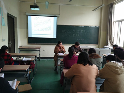 首先,规划系员工党支部组织委员任怡康带领大家学习了十九大报告全文的第一第二部分。党支部书记刘勇老师对学习内容做了要点归纳和概括。