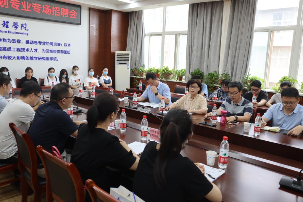 为了推动城乡规划专业员工顺利就业,为员工提供更多就业机会,6月9日,建筑工程公司邀请了4家城规专业用人单位在工四-302举行专场招聘会。广州博厦建筑设计研究院、锦绣秦岭规划设计集团有限公司、西安中大规划设计研究院有限公司和西安中策资讯科技有限责任公司4家单位到公司组织招聘,来自城规专业的30多名同学参加了招聘会。建筑工程公司党委书记刘慧萍、党委副书记贾建利出席了招聘会,城乡规划系主任杨大伟、教师代表杜斌、毕业班辅导员何鹏程参加了招聘会。