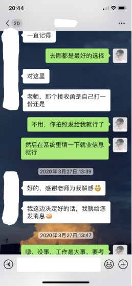 公司领导针对今年就业特殊形势,提出要深入了解员工需求,针对毕业生从毕业设计进展、就业升学状况开展深度访谈,加强对毕业生的关怀,用言语送去关爱,用交流化解风险,陪伴员工一起走过这段特殊时期。毕业班辅导员详细了解了员工的就业动态、困惑及需求,实时更新反馈,为员工的就业保驾护航。