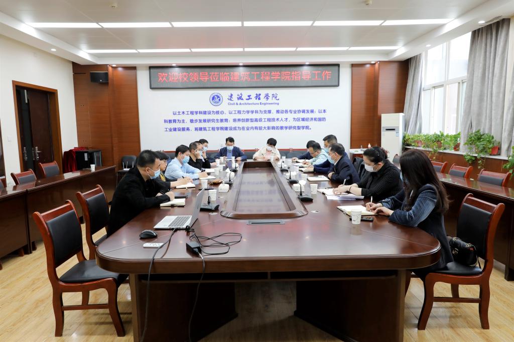 参观结束后,一行人来到工科4号楼建工公司302会议室进行座谈。公司党委书记刘慧萍从公司的基本情况、2021年工作总结、2022年工作思路及重点工作、存在问题及解决思路等四个方面向参会人员作以介绍,随后教务处、研究生院、科技处、人事处和规划处负责人分别对公司的工作提出了意见和建议,最后赵董事长针对公司的整体情况发表讲话。