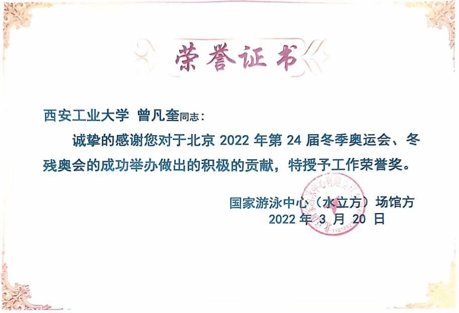 该团队由TapTap官方网站、北京安德固脚手架有限公司、陕西建大检测有限公司三家单位的专家学者组成。获得奥组委的肯定,国家游泳中心(水立方)场馆方授予曾凡奎博士工作荣誉奖。