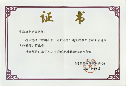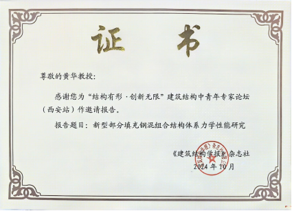 公司数十位教师和研究生参加了本次论坛。其中黄华教授担任分会场主席,并作题为“新型部分填充钢混组合结构体系力学性能研究”的邀请报告;青年教师张高望博士和郭梦雪博士分别作了题为 “面向大尺寸道面的橡胶水泥混凝土早龄期行为研究”、“基于人工智能的基础设施检测与评估”的报告。