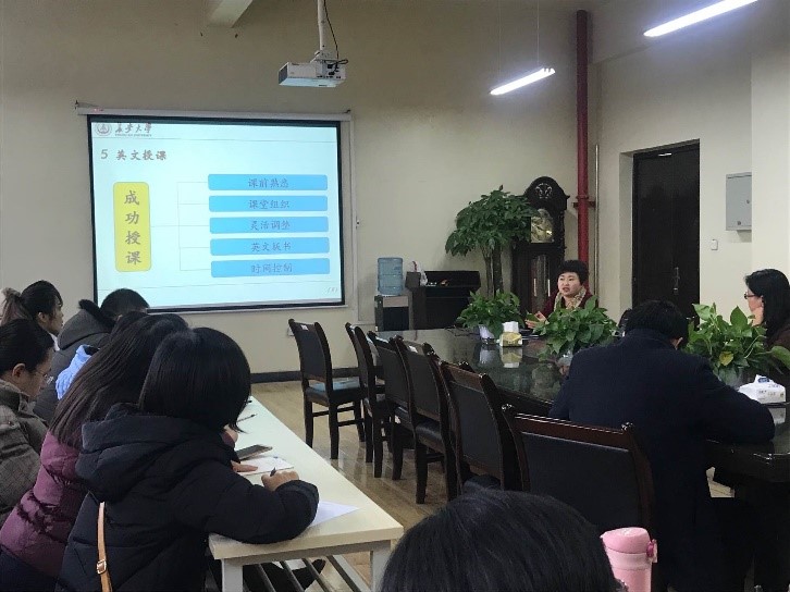 会议开始,孙老师首先介绍了长安大学职工教育的基本情况以及对职工的培养管理模式。其次,孙老师讲到,职工的文化背景多样、宗教信仰不同且学业水平差异较大,这些问题会增加英文教学的难度,针对这些问题如何开展课堂教学、课后答疑,以及教材的选取、如何备课等分享了自己的方法。最后,孙老师与公司教师们展开座谈,以自身教学经验现身说法,对教师们提出的英文教材选用、英文课堂中的沟通、国际生考试等问题给出建议。